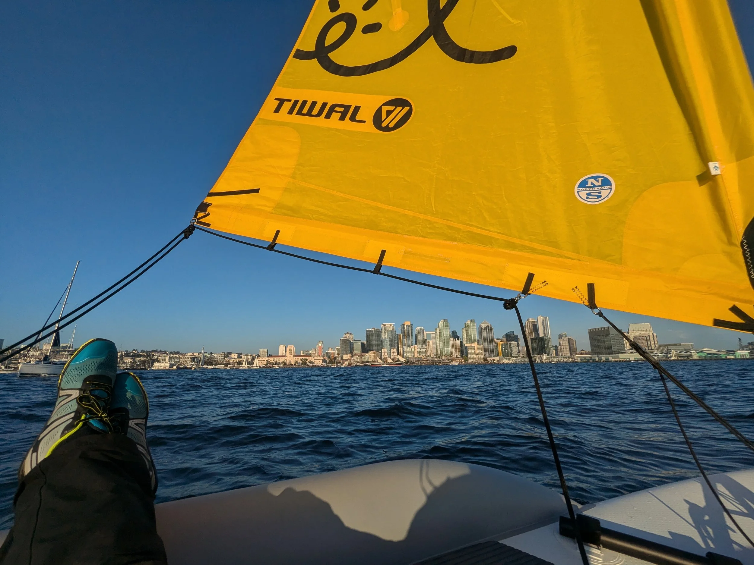 Introduced in 2022, the Tiwal 2L is the longer variation of its Tiwal 2 sibling, accommodating 2 adults or 1 adult and 2 children. It is similar in design to the Tiwal 2 with inflatable wings and just as quick to assemble, but with a larger hull and sail that collapses into the same compact package.